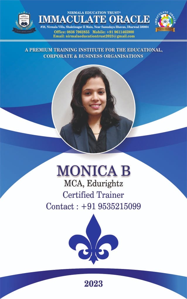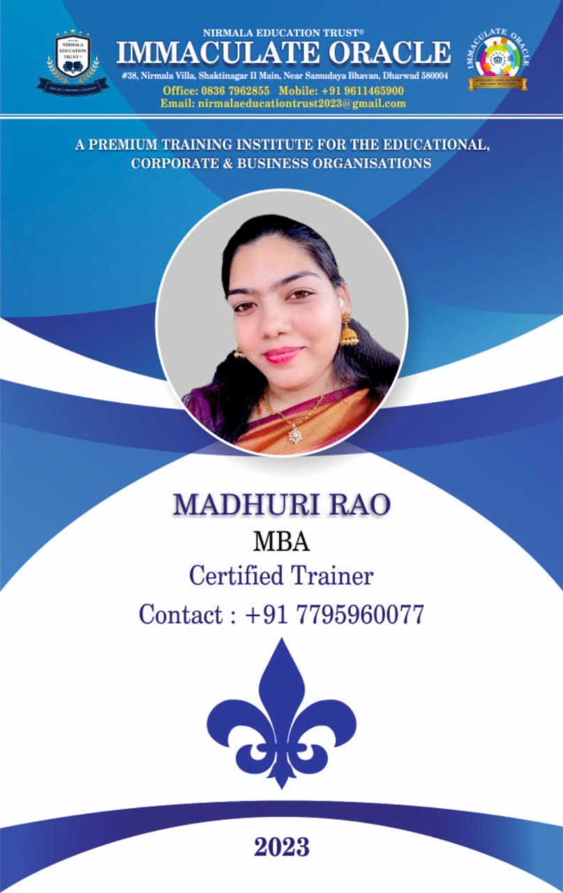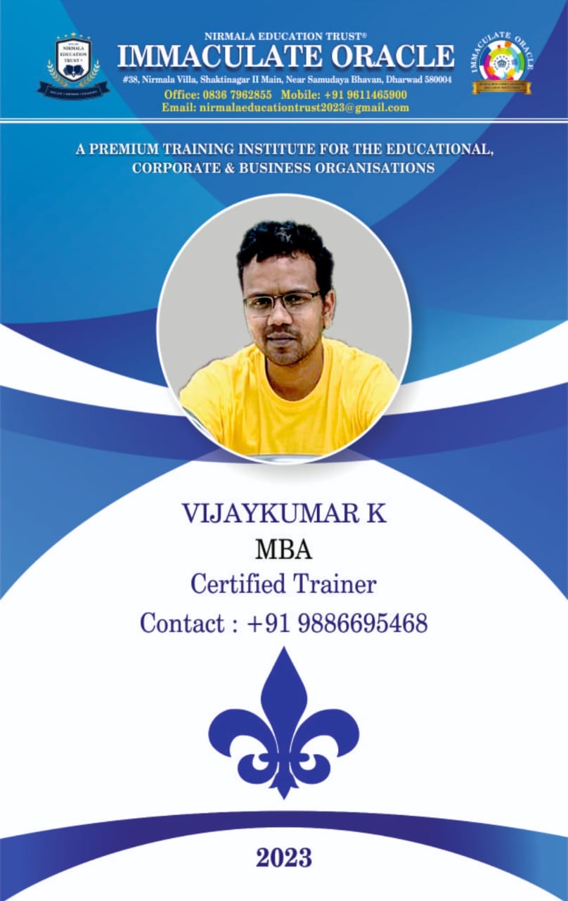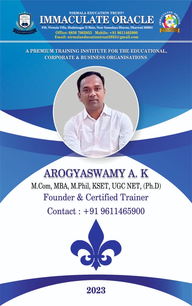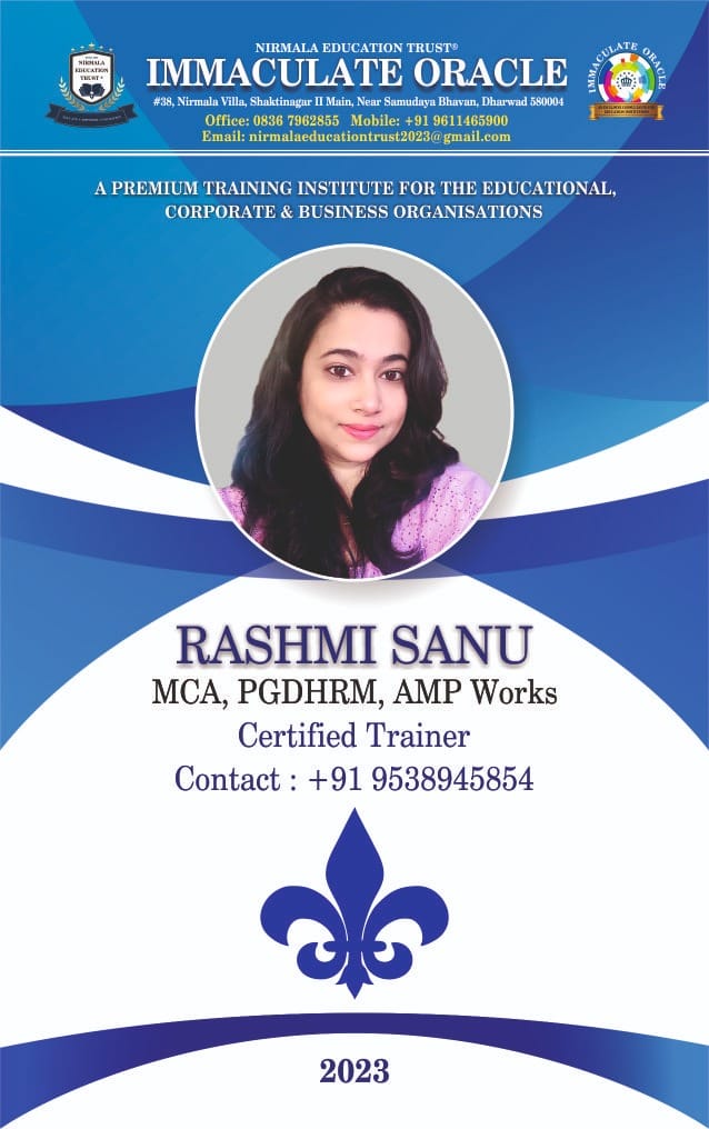 The institute boasts a team of highly professional, scholastic with rich training experience, sharing a sense of professional dedication in caring and nurturing the trainees. The main aim of the Immaculate Oracle’s trainers is to offer superior quality, affordable & professional training with view to build graduates, postgraduates, employees with high ethical & leadership qualities.